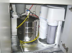 日本の水道圧はアメリカに較べて低いので、ほとんどの地域で増圧ポンプが不可欠です。自動運転の増圧ポンプ装備により安定した造水量を確保します。造水速度:7.4リットル/時間 |